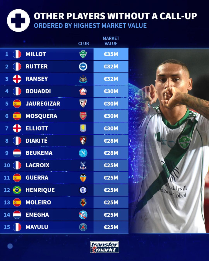 冈萨雷斯(西班牙)——4,000万欧元、恩瓦内里(英格兰)——5,500万欧元、吉滕斯(英格兰)——5,000万欧元